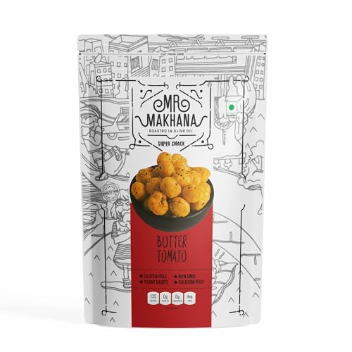 MR. MAKHANA Roasted Makhana and Foxnuts | Healthy Snacks | Gluten Free | MSG Free | Antioxidant | Rich Calcium | Zero Trans Fat | Zero cholesterol (Butter Tomato) 1 count 55g