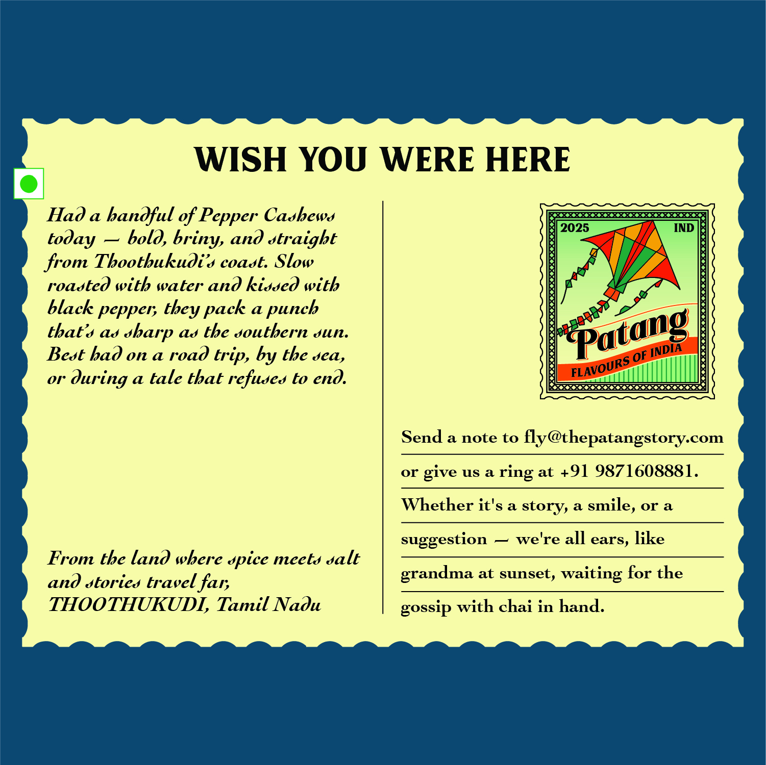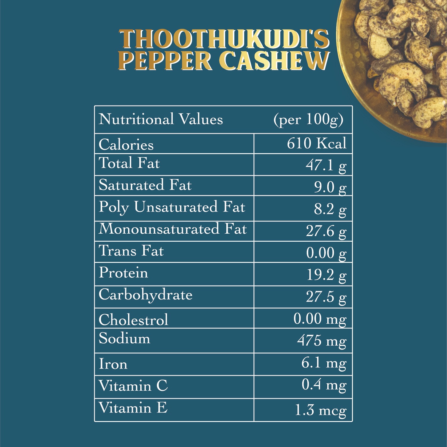 This is Thoothukudi in a handful. Bright sun. Salty air. A rhythm that comes from the harbour and lives in the food. The cashews stay buttery, the pepper wakes you up, and the balance feels just right.