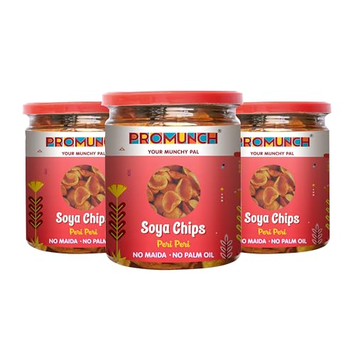 HomeGrocerySnacksHealthy SnacksPROMUNCH Peri Peri Soya Chips High-Protein Guilt-Free Crunchy Snack | No Palm Oil No Maida Healthy & Savory Protein Treat (80g Pack of 3)