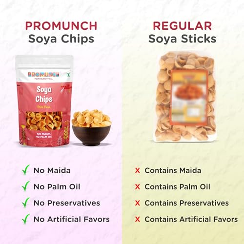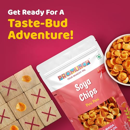 Ignite your taste buds with PROMUNCH Soya Chips - Peri Peri! These delectable Chips are infused with the bold spicy flavor of peri peri seasoning offering a deliciously addictive crunch. Made from high-quality soy they are Packed with protein making them a healthier snacking option. With no artificial preservatives or flavors you can enjoy these Chips with peace of mind. Perfect for any occasion—whether you’re enjoying a movie night hosting friends or simply looking for a snack to spice up your day—PROMUNCH Soya Chips are the ideal choice. Grab a Pack and savor the fiery goodness!