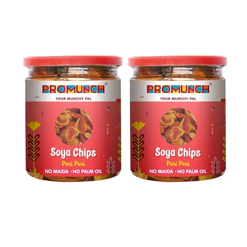 PROMUNCH Soya Chips in Peri Peri flavor are a delicious and healthier alternative to your regular chips. Made from good quality soya these chips are crispy crunchy and packed with bold flavors that will keep you coming back for more. The Peri Peri flavor adds a perfect balance of spice and zest making each bite an exciting taste experience. What makes these chips even better is that they are free from palm oil and maida so you can enjoy them guilt-free. They are a much healthier option compared to traditional snacks giving you all the crunch and taste without the unhealthy additives. Whether you're looking for a snack to enjoy during your break while watching a movie or sharing with friends and family PROMUNCH Soya Chips are the perfect choice. The 80g pack (2 packs total) is ideal for those who are always on the go providing a convenient and satisfying snack for any time of day. These chips are not only flavorful but also support a healthier lifestyle making them a good choice for anyone who wants to snack smart without compromising on taste. So if you’re craving something savory crunchy and spicy PROMUNCH Soya Chips are the perfect snack to keep you satisfied and energized. Enjoy the amazing Peri Peri flavor and experience the joy of healthy snacking all in one bite!