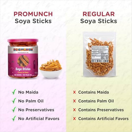 PROMUNCH Soya Sticks Combo Pack | Chatpata Masala & Cream Onion Flavors | Crispy Healthy Namkeen Snacks | No Palm Oil & No Maida (80g Pack of 2)