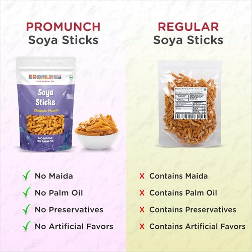 PROMUNCH Soya Sticks | Crispy snacks | Namkeen savoury chips | No Palm Oil And Maida | Chatpata masala - 30g Pack of 8