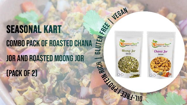 HomeGrocerySnacksHealthy SnacksSeasonal Kart Combo Pack of Roasted Chana Jor and Roasted Moong Jor 350 gm Each Total 700 gm (Pack of 2) Oil-Free I Protein Rich | Gluten Free | Vegan