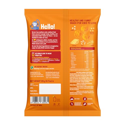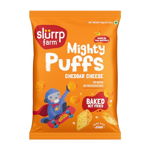 HomeGrocerySnacksHealthy SnacksSlurrp Farm Mighty Jowar Puffs Cheddar Cheese | Not Fried No Maida | Healthy Snacks for Kids School Tiffin and Travel-Friendly | 9 x 20g packs