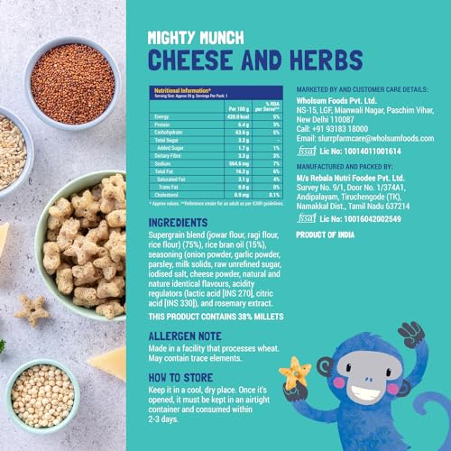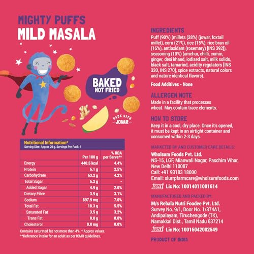 Slurrp Farm Mighty Jowar Puffs | Khatta Meetha Mild Masala Cheddar Cheese Tangy Tomato Choco Ragi Cheese & Herbs | Not Fried No Maida | Healthy Snack for Kids and Travel Friendly | 9 x 20g