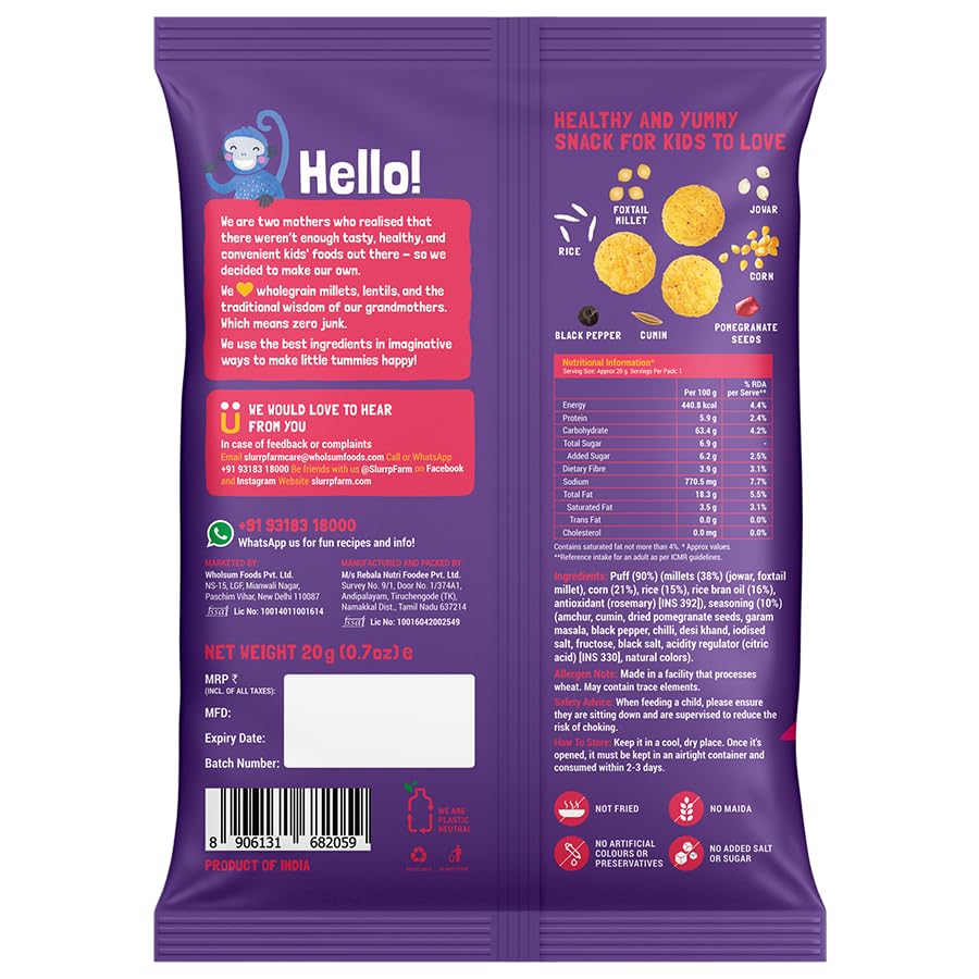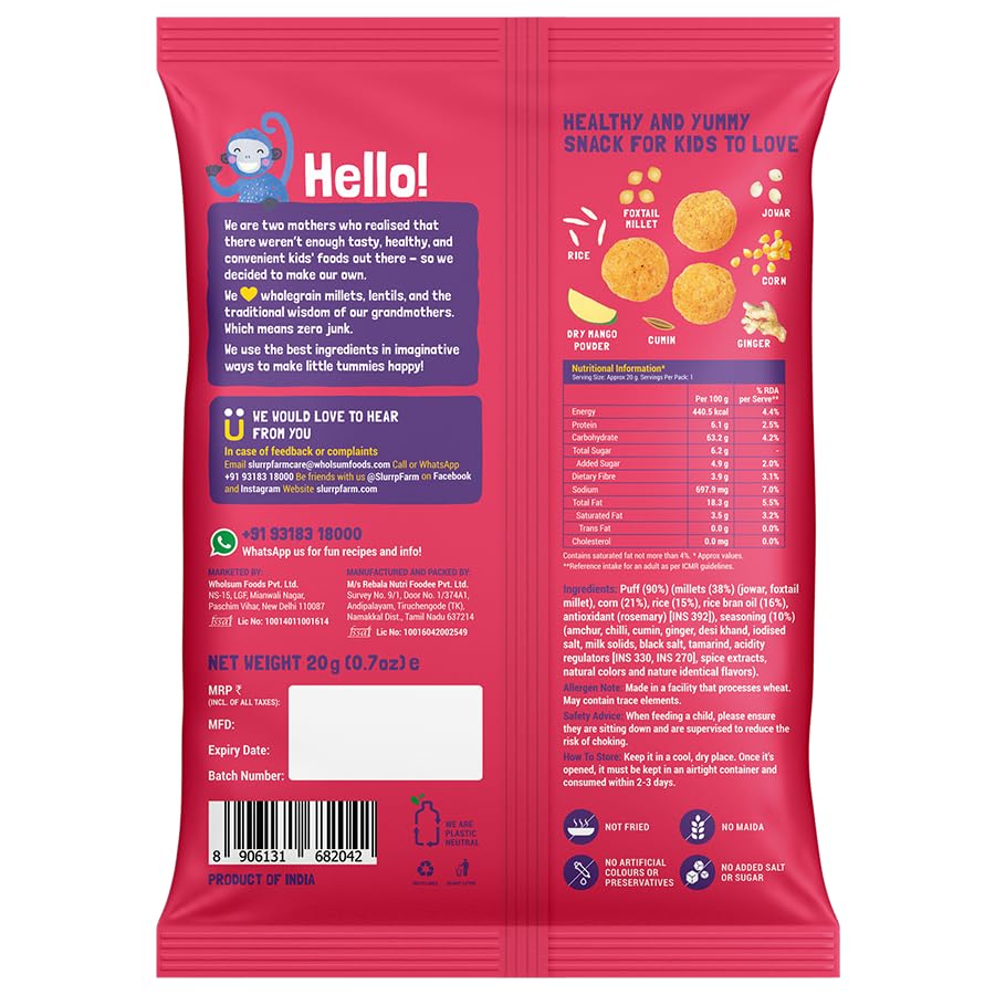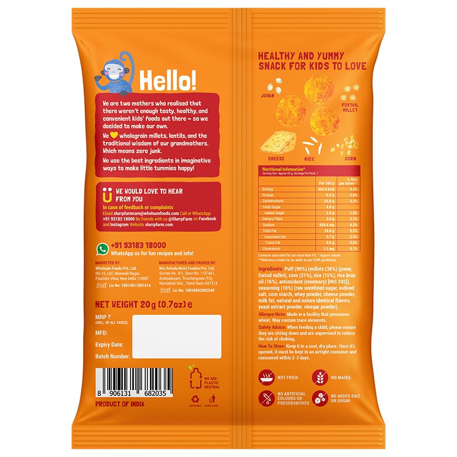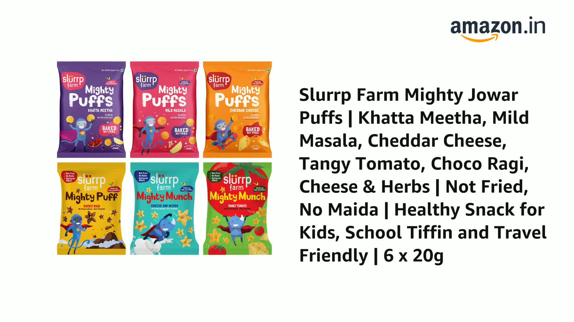 Slurrp Farm Mighty Jowar Puffs | Khatta Meetha, Mild Masala, Cheddar Cheese, Tangy Tomato, Choco Ragi, Cheese & Herbs | Not Fried, No Maida | Healthy Snack for Kids, School Tiffin and Travel Friendly | 6 x 20g