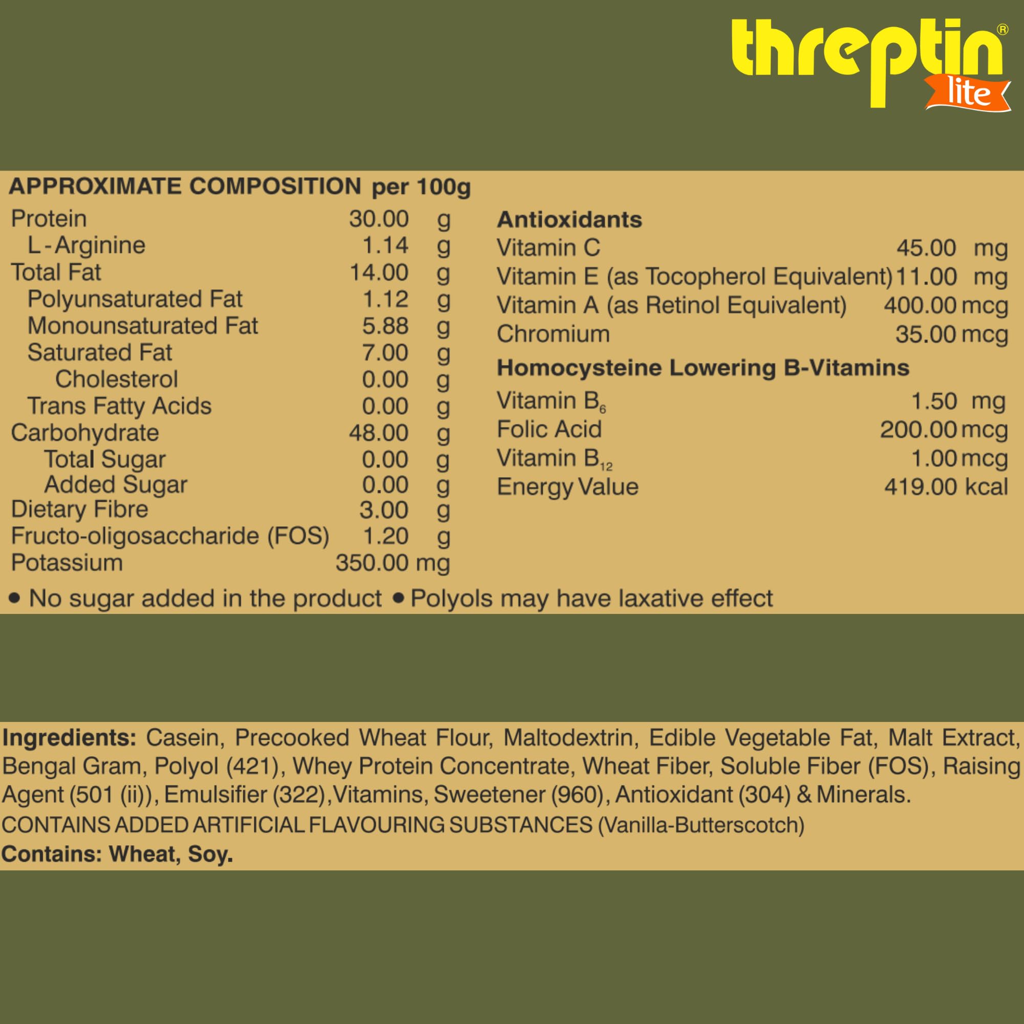 Fulfill your protein needs, enjoy effortless nutrition. Threptin tastes great anytime as a meal between meals. One of the most sought after protein diskettes in the market because the product is free of sugar and is best suited for people of different age groups.