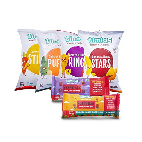 Get your kids birthday party going with timios celebration pack. Our 100% natural snacks are perfect for your super kids to keep them energetic. These nutrient-rich multigrain munchies arent fried and are low on salt & sugar. Theyre firm enough for little fingers to hold but soft enough to melt in their tiny mouths.