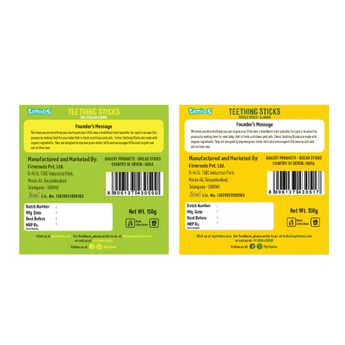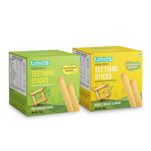 Timios Multigrain Teething Sticks|Organic Snack|Dissolves Easily|Wholewheat Ajwain|Multigrain Cumin|Pack of 2|150g