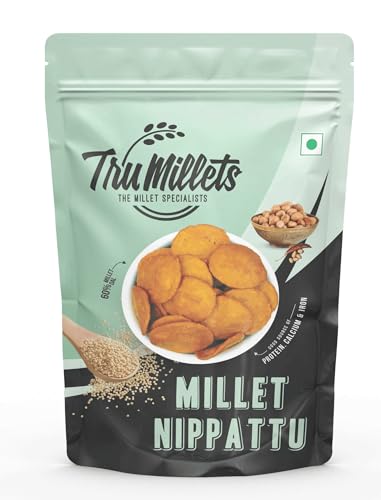 Indulge in the wholesome goodness of TruMillets Healthy Millet Snack Combo featuring four traditional Indian snacks—Nipattu Millet Bites Murukku and Kodbale—each crafted to perfection with nutrient-rich millets. This 4-pack offers a delightful fusion of taste and health making it an ideal choice for guilt-free snacking. At TruMillets we are committed to reviving traditional Indian snacks by incorporating the nutritional benefits of millets. Our products are designed to offer a harmonious blend of health and taste ensuring that you don't have to compromise on flavor while making healthier choices. Elevate your snacking experience with TruMillets Healthy Millet Snack Combo—a perfect amalgamation of tradition taste and nutrition.