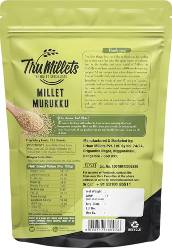 Kodo millet murukku is a delightful and nutritious snack that blends traditional flavors with the health benefits of kodo millet. This crispy spiral-shaped treat is a popular choice in South Indian cuisine often enjoyed during festivals special occasions or as a savory snack for tea time. By substituting regular rice flour with kodo millet flour this version of murukku not only offers a unique taste but also enhances its nutritional profile.The process of making kodo millet murukku begins with preparing the dough. Kodo millet flour is mixed with a variety of spices such as cumin seeds sesame seeds and a hint of asafoetida which add depth and aroma to the snack. The addition of salt and water helps achieve the right consistency making the dough pliable and easy to shape. This savory mixture is then filled into a murukku maker a traditional kitchen tool that allows for easy extrusion into beautiful intricate shapes.One of the key benefits of kodo millet murukku is its nutritional content. Kodo millet is rich in fiber which aids in digestion and promotes a feeling of fullness making it an ideal snack for those looking to maintain a healthy diet. Additionally it is packed with essential minerals such as magnesium phosphorus and iron contributing to overall well-being. Kodo millet murukku stands out not only for its health benefits but also for its delightful crunch and flavor. When fried to golden perfection each piece is crispy on the outside while maintaining a light texture within. The nutty flavor of kodo millet complemented by the spices creates a satisfying and addictive snack that can be enjoyed on its own or paired with chutneys and dips.