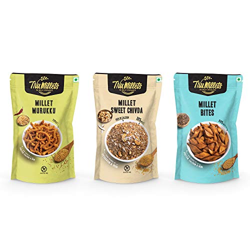 TruMillets Ready to Eat Snack Combo – Sweet Chivda Millet Bites & Murukku Sticks | 125g Each (Pack of 3) | Healthy Millet Snacks | Gluten-Free & No Preservatives