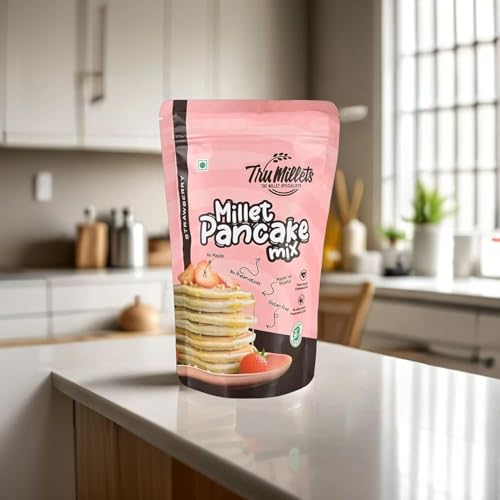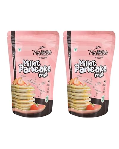 Trumillets Strawberry Millet Pancake | Instant Breakfast Mix | 100% Vegetarian Eggless Healthy Breakfast for Kids & Adults | No Added Maida | No Refined Sugar |Gluten Free (Each 150 Gm Pack of 2)