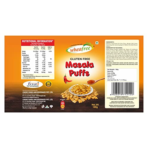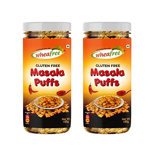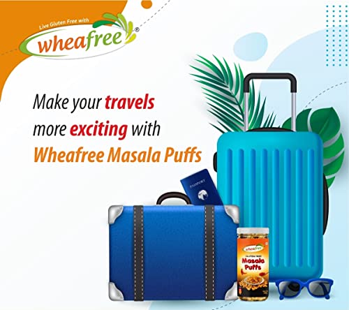 Wheafree Gluten Free Masala Puffs (Pack of 2-180g each) | Delicious Ready to Eat Indian Savoury Snacks | Tasty Crispy and Crunchy | Made with Rice & Chana Dal | Not Fried Protein-Rich Perfect Snack for All Ages and Travel