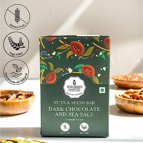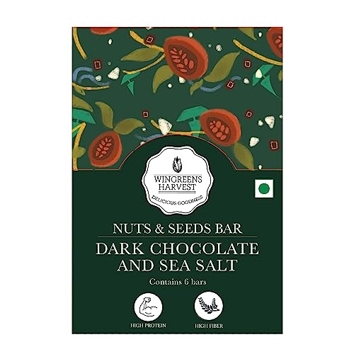 Wingreens Harvest Nuts & Seeds Energy Bars - Dark Chocolate & Sea Salt - 180 g (Pack of 6 x 30g) Almonds cashews pumpkin seeds & Dry Fruit Healthy Protein Snack Bars All Natural Plant Based