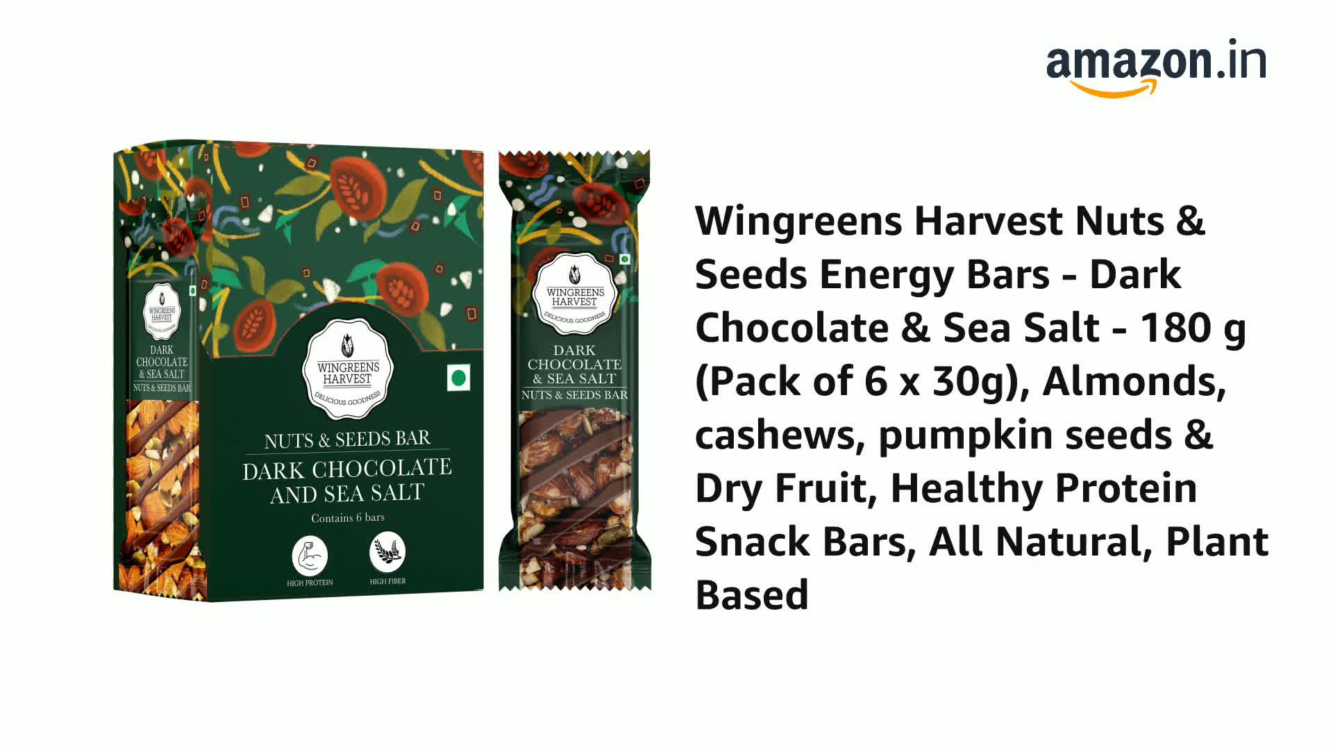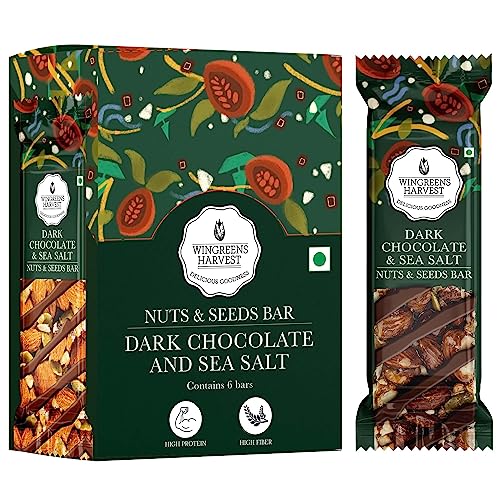 HomeGrocerySnacksHealthy SnacksWingreens Harvest Nuts & Seeds Energy Bars - Dark Chocolate & Sea Salt - 180 g (Pack of 6 x 30g), Almonds, cashews, pumpkin seeds & Dry Fruit, Healthy Protein Snack Bars, All Natural, Plant Based