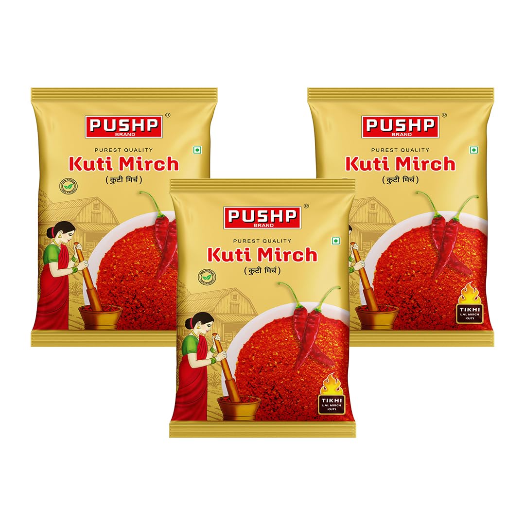 Pushp Kuti Mirchi | 500g Pouch | Authentic Crushed Red Chili | Hot Spicy & Flavorful | 100% Natural | Ideal for Indian Cooking (Pack of 3)
