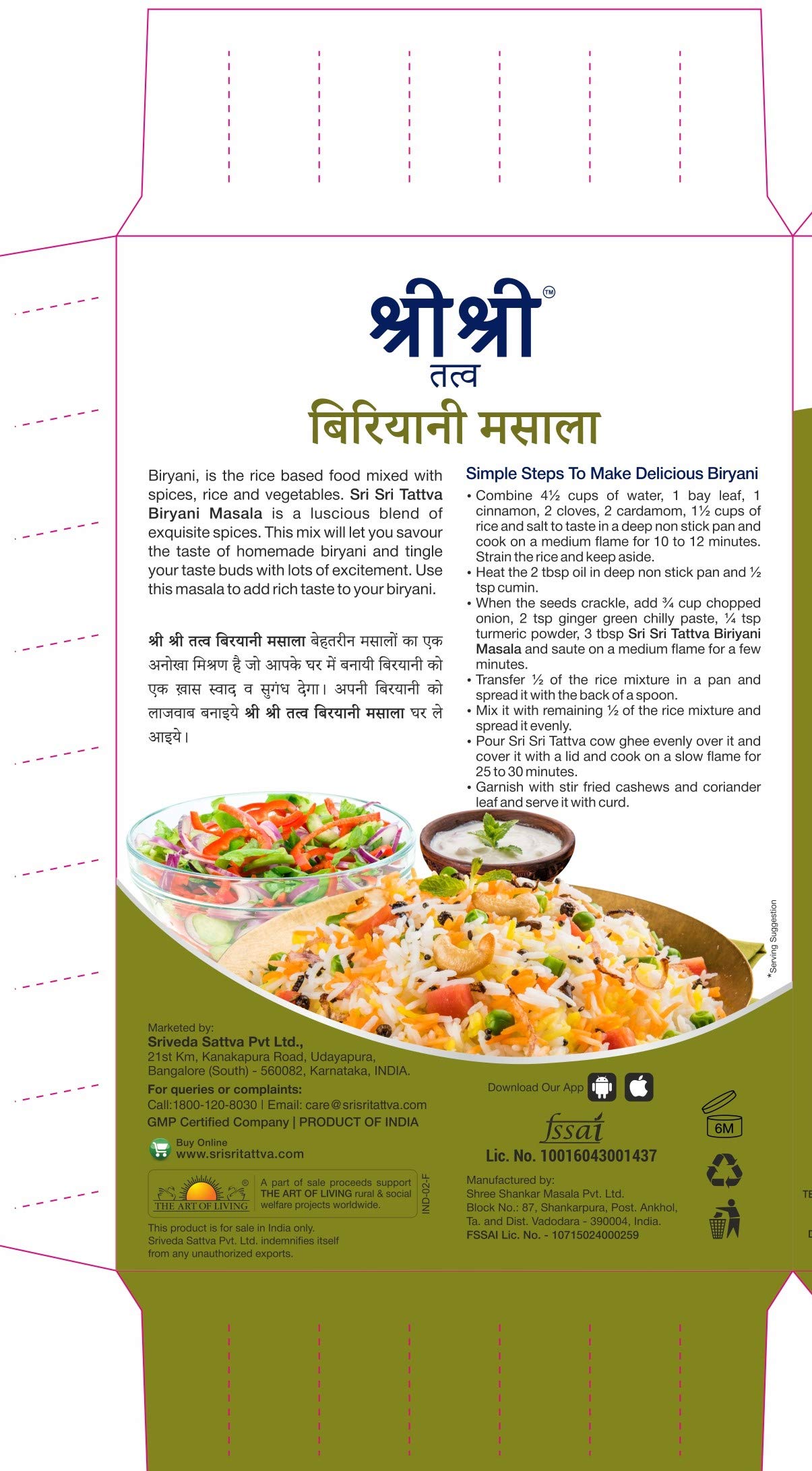 Size:Pack of 2Biryani is the rice based food mixed with spices rice and vegetables. Sri Sri Tattva Biryani Masala is a luscious blend of exquisite spices. This mix will let you savour the taste of homemade biryani and tingle your taste buds with lots of excitement. Use this masala to add a rich taste to your biryani.