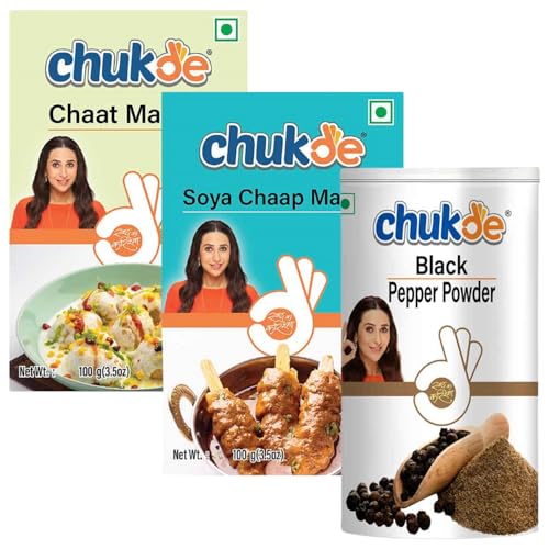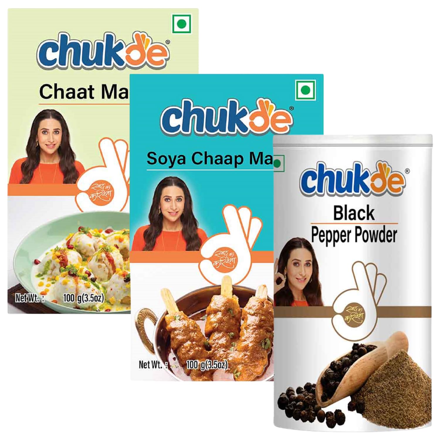 Chukde - Chaat Masala 100 Gm Soya Chaap 100 Gm & Black Pepper Powder 50 Gm - Authentic Spice Blend - Blended Powdered Spices for Mouthwatering Meals - Combo Pack