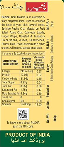 Pushp Brand Chat Masala With Jar (500g Pack of 1)