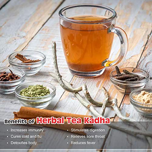 • Immunity Through Ayurveda. Drinks Herbal Tea kaadha madce from jaggery Powder Tulsi Dalchini Kalimirch Shunthi. For Best Results just Boil in Water. All Spices are Hand Ground in a traditional Manner in a stone mill to retain the oleoresins and naturaceut