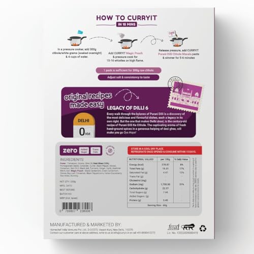 CURRYiT Purani Dilli Chole Masala Curry Paste 250g | Ready to Cook in 15 mins | Serves 6 | Just add Kabuli Chana | Made with Ghee | No Preservatives | Eat with Chawal Puri Bhature | Indian Masala Gravy