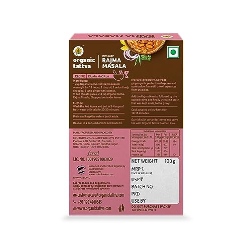 Organic Tattva, Organic Rajma Masala Powder, No Artificial Additives (100G, Pouch)
