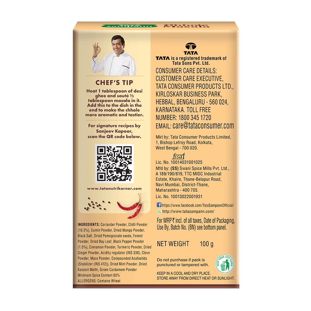 • Crafted by Chef Sanjeev Kapoor: Tata Sampann Chhole Masala is specially crafted by Chef Sanjeev Kapoor that lets you cook like a master chef