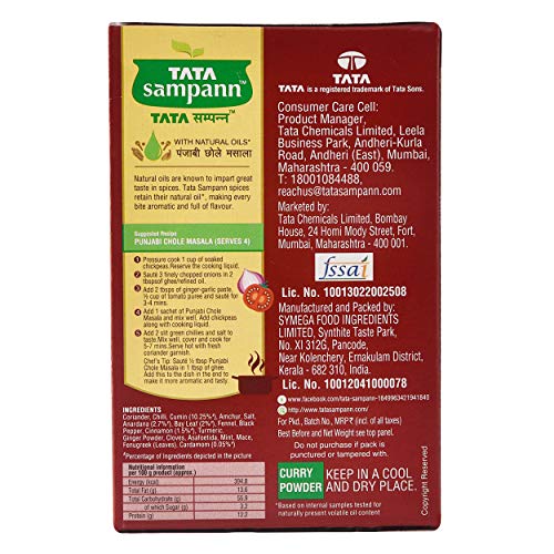 Tata Sampann's Punjabi Chole Masala is a scientifically processed blended masala of selected varieties of whole spices. This blend is a creation of master chef Sanjeev Kapoor which ensures the right spices are used in the right proportion to make every dish taste amazing. International standards of processing ensure consistent quality making it the favourite choice.