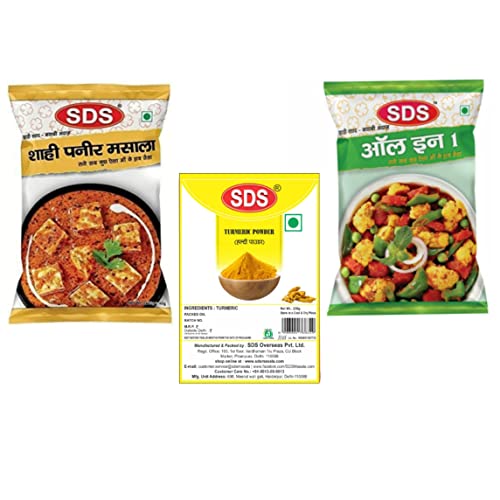 SDS Masala 3 Piece Combo (1 Shahi Paneer Masala 40g + 1 Haldi Powder 200g + 1 All in One Masala 50gTransform your kitchen into a haven of exquisite flavors with the SDS Masala 3 Piece Combo. Carefully curated this collection features Shahi Paneer Masala (40g) a regal blend of aromatic spices that elevates ordinary paneer into a dish fit for royalty. Immerse yourself in the rich authentic taste and experience the culinary excellence that defines Indian cuisine.Add a burst of golden goodness and health benefits to your recipes with 200g of Haldi Powder. This vibrant spice not only enhances the color of your dishes but also brings a myriad of nutritional advantages. From anti-inflammatory properties to antioxidant richness Haldi Powder is a must-have in every kitchen.Simplify your cooking process without compromising on authentic taste with All in One Masala (50g). This versatile blend is your culinary companion offering convenience and a burst of traditional flavors for a variety of dishes. Whether you're creating curries stews or marinating proteins All in One Masala ensures your dishes are infused with the essence of Indian spices.Each masala in this combo is thoughtfully packaged in perfectly portioned packs providing the convenience you need in the kitchen. Effortlessly create flavorful meals with precision whether you're an experienced chef or a home cook exploring the world of Indian cuisine.The SDS Masala 3 Piece Combo is more than a collection of spices; it's an invitation to culinary excellence. Whether you're adding a touch of royalty to your paneer infusing health benefits with Haldi Powder or simplifying your cooking with All in One Masala this combo is your passport to a world of vibrant colors regal delights and versatile blends. Elevate your dishes captivate your taste buds and embark on a flavorful journey with this exceptional masala collection.