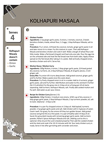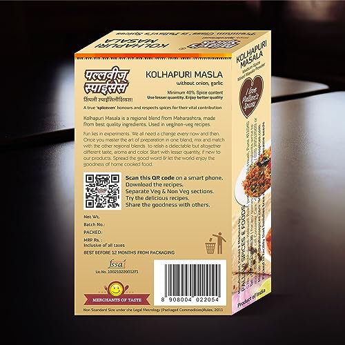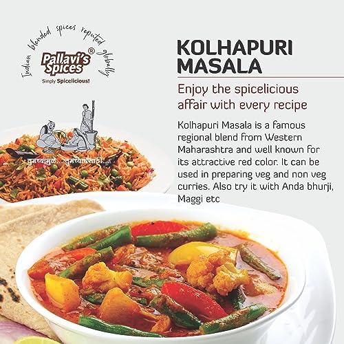 Kolhapuri masala of spices is made of best quality 26 ingredients to give attractive red colour delectable taste and unforgettable aroma used in all the veg recipes usual kolhapuri misal masala rice noodles kolhapuri red gravy. Preferred for mutton chicken fish egg curry egg bhurji etc of delicious medium spicy flavour imparting inviting rich red color. Use lesser quantity enjoy better quality. No added preservatives artificial flavours and msg.
