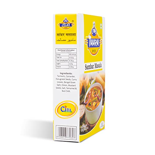 Sambhar Masala Powder by Ciba Taaza Spices Retain Its Quality & Aroma Because it is Made in Stainless Steel Plant.No Preservatives. No Artificial Food Color. All Natural Ingredients.Shelf Life: 12 Months.Once Opened Keep it in an Airtight Container..