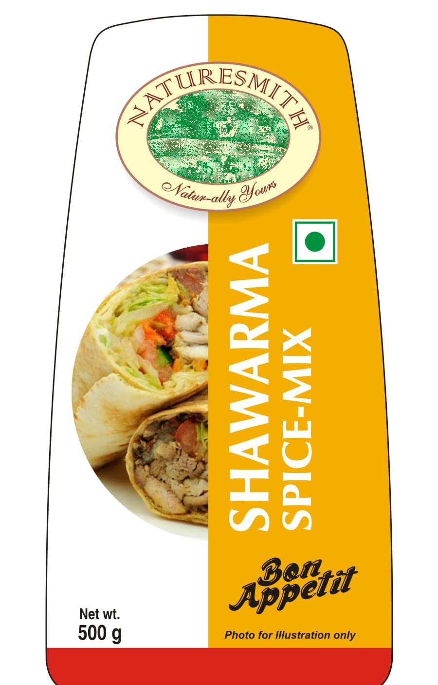 • Naturesmith Shawarma Spice Mix is made from marinated meat that has been slow roasted on a vertical spit for many hours €“ the meat can be anything from lamb beef or chicken to goat turkey or a combination of any of these.
