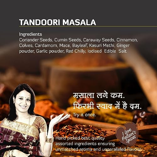 Tandoori masala of spices is made from best quality 14 ingredients. Used to prepare veg & non veg tandoori recipes paneer tikka chicken tikka stuffed paneer / aloo / veg paratha etc. Use lesser quantity enjoy better quality. No added preservatives artificial flavours and msg. Contains ginger and garlic.