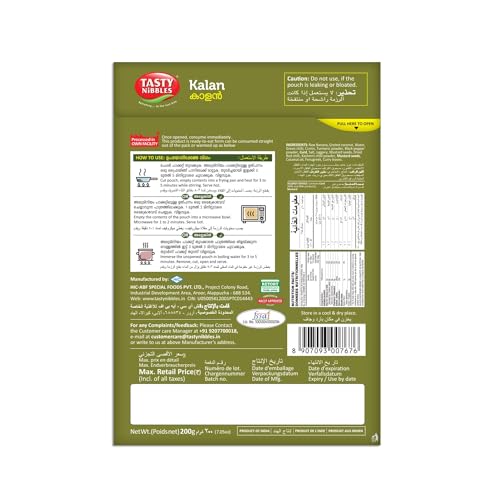 HomeGrocerySpicesInstant SpicesCurry PowderTasty Nibbles Ready to Eat Kalan Curry 200g | Open Heat & Eat | No Food Additives Added | Japanese Retort Technology | Kerala Style Kurukku Kalan Curry [Pack of 1]