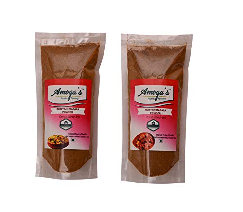 Amoga's Pickles Factory Mutton Masala is a mixture of ground spices used in preparation of indian foods.The taste depends on the Quality we use so we use the best in quality which were grown regionally.Ready made packed Masala's were used by most of the working women This Mutton masala goes well with South Indian and North Indian Mutton Curries.Cleaning & sundrying them and roasting is the important for hygienic reasons.so we follow the same procedure.We have researched a lot and finally made this blends of Mutton Masala. Amoga's Pickles Factory Biryani Masala is a mixture of ground spices used in preparation of indian foods.The taste depends on the Quality we use so we use the best in quality which were grown regionally.Ready made packed Masala's were used by most of the working women This Biryani masala goes well with South Indian and North Indian Biryani.Mostly Hyderabad Veg & Chicken Biryani could be prepared with this Biryani Masala.Cleaning & sundrying them and roasting is the important for hygienic reasons.so we follow the same procedure.We have researched a lot and finally made this blends of Biryani Masala.