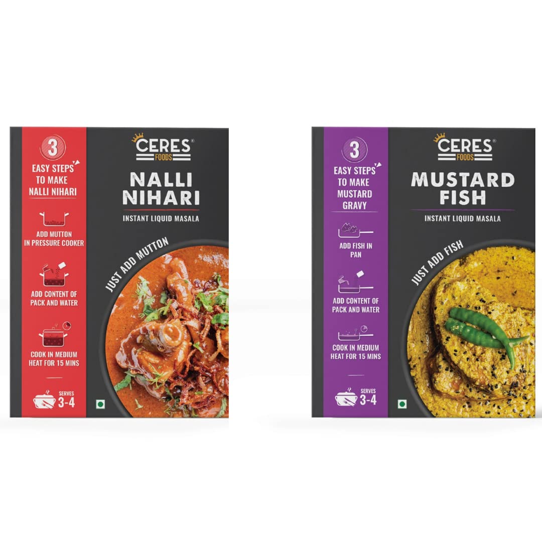 Nalli Nihari: The word âNihariâ originated from the Arabic word âNaharâ which means âmorningâ. It was originally eaten by Kings of the Mughal Empire as a breakfast item after their morning prayers. It later became a regular breakfast dish for the working class due to its energy-ing properties. When classically prepared Nihari takes approximately 6-8 hours just to stew not to mention preparation time. Thankfully with the help of modern technology and methods it is much easier achieve the same result quickly with Ceres Foods ready to cook range. No more cutting or chopg onions and ing mutiples spices. Just meat to our delicous products and achieve results you will be proud of. Mustard Fish: Mustard Fish or better known as "Sorshe Mach" in Bengal is a delicate yet robust dish made with mustard paste and fresh water fish or prawns. The dish has many variations such as mixing grated coconut to lower its pungency. The key to this dish lies in the preparation rather than the cooking. Red and yellow mustard seeds are blended very carefully with green chillies so as not to make it . For all mustard fans this is a versatile dish which has a lot of applications and varations. Thankfully with the help of modern technology and methods it is much easier achieve the same result quickly with Ceres Foods ready to cook range. Just fish/prawns to our delicous products and achieve results you will be proud of.