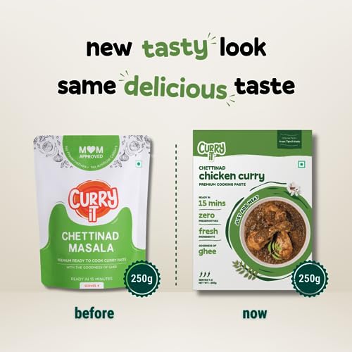 HomeGrocerySpicesInstant SpicesNon Veg MasalaCURRYiT Chettinad Chicken Curry Paste 250g | Ready to Cook in 15 mins | Serves 4-6 | Just add Fresh Mutton Meat Fish | Goodness of Ghee | No Preservatives | Eat with Chawal Roti | Indian Masala Gravy