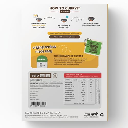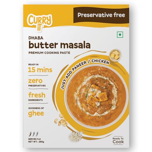 HomeGrocerySpicesInstant SpicesNon Veg MasalaCURRYiT Dhaba Style Butter Masala Curry Paste (Pack of 1)| | Ready to Cook in 15 mins | Make Butter Chicken | Shahi Paneer Masala | Tikka Masala Gravy | Serves 6 | Made with Ghee | No Preservatives | 250g