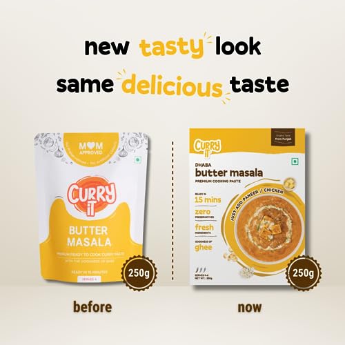 CURRYiT Dhaba Style Butter Masala Curry Paste (Pack of 1)| | Ready to Cook in 15 mins | Make Butter Chicken | Shahi Paneer Masala | Tikka Masala Gravy | Serves 6 | Made with Ghee | No Preservatives | 250g