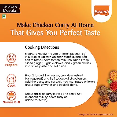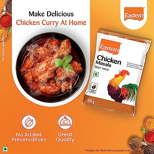 Looking for your perfect taste partner for chicken dishes? Look no further than Eastern's Chicken Masala Powder! A blend of 15 aromatic ingredients perfectly enhances the flavour of chicken curry tandoori chicken chicken tikka masala & more. Crafted to perfection by Eastern Condiments this masala powder is ground to perfection ensuring every dish you make bursts with flavour. And with no added colour or preservatives eat without worrying! Eastern's Chicken Masala Powder is just one of many delectable masalas offered by Eastern like Eastern Meat Masala Eastern Chicken Kabab Masala & Eastern Biryani Masala Powder Eastern has everything you need. So why wait? Join us in our mission to make tasty chicken with ease at home. Available in a convenient 100g pack this masala powder is perfect for home cooks and professional chefs alike. Add a dash of Eastern's Chicken Masala Powder to elevate your cooking!