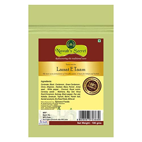 Lazzat E Taam also know as Potli ka Masala is one of the secret spices of the Kitchen of erstwhile Nawab's of Lucknow. It is one of the most important ingredient for the Nehari Kebab and also use in Curry for added flavour