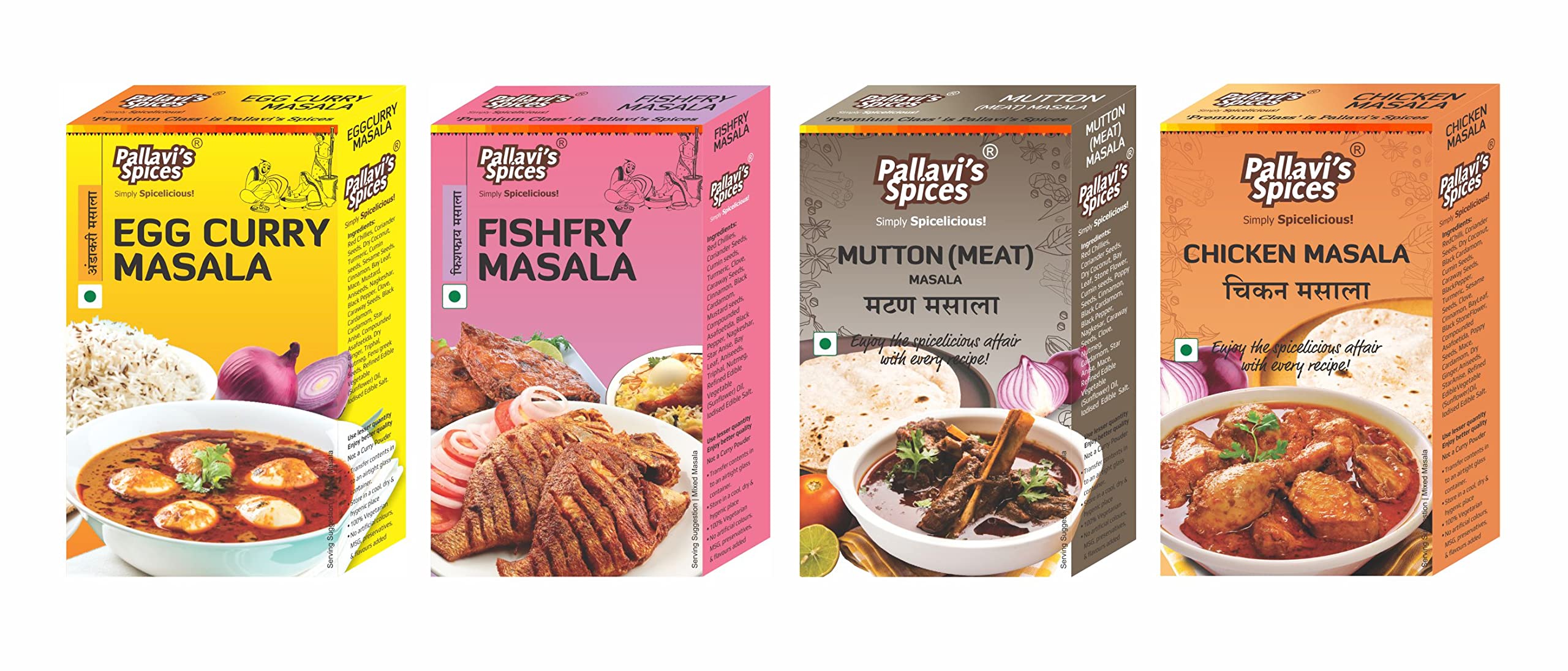 Pallavi's Spices Andacurry Masala Chicken Masala Fish Fry Masala and Mutton Masala 200g (Pack of 4)