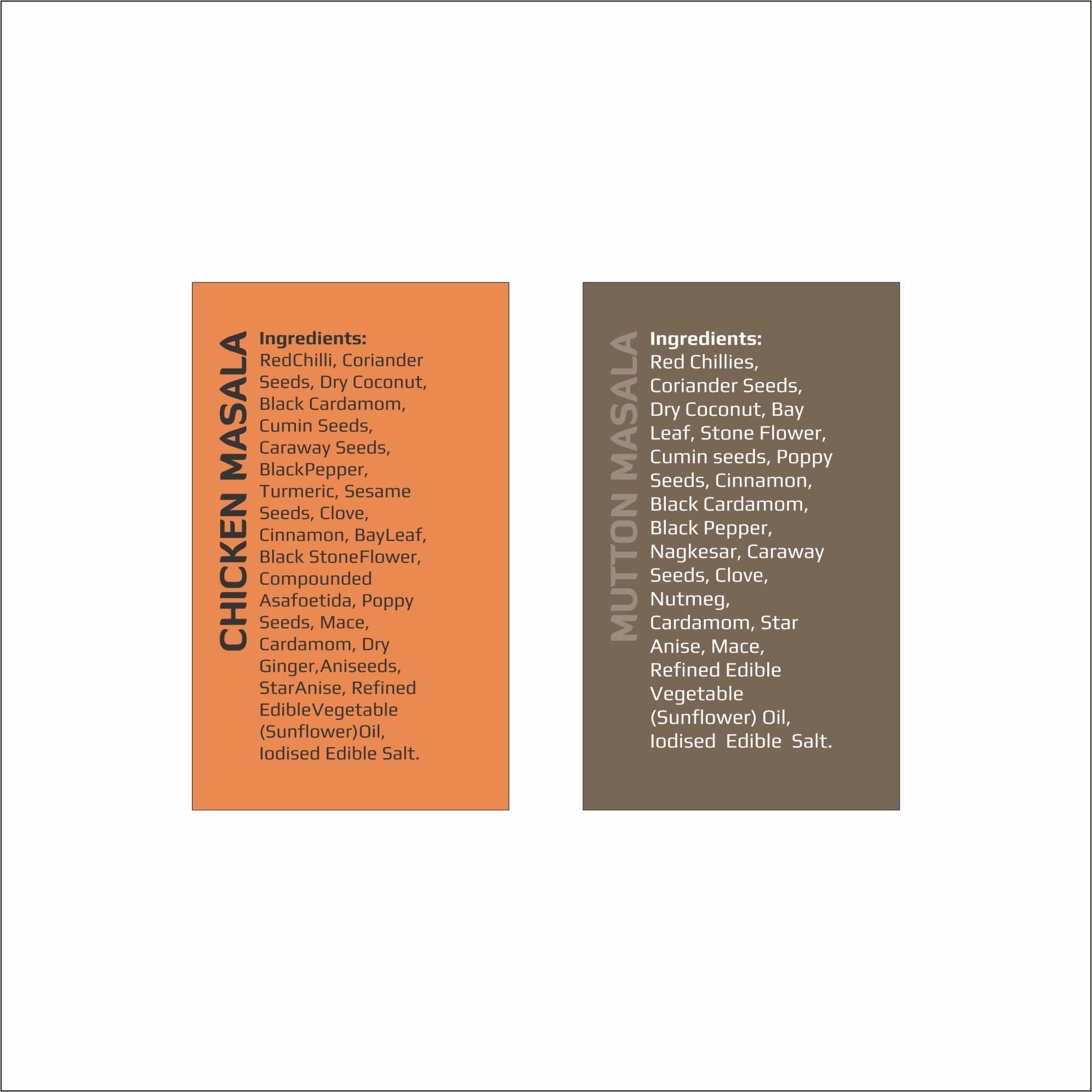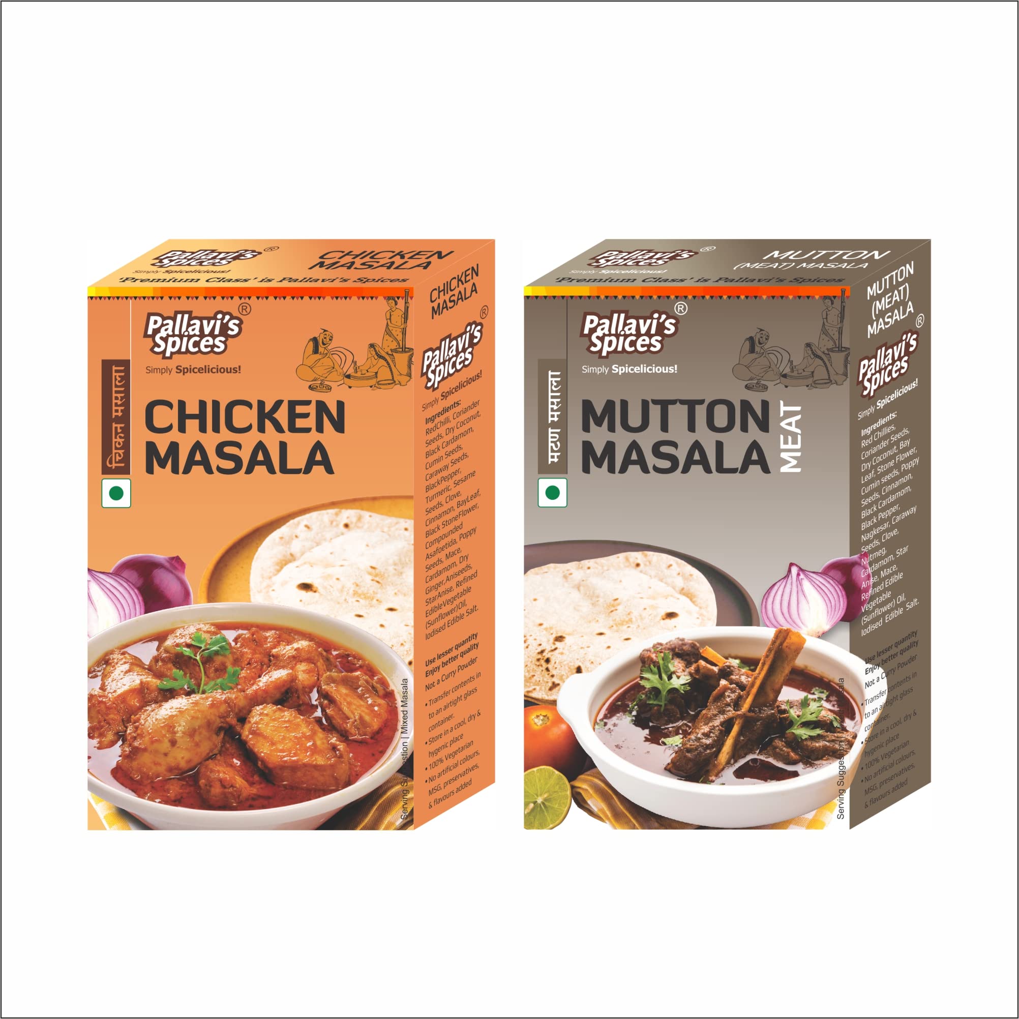 2 packs of Chicken Masala and 2 packs of Mutton Masala 50g each. Each individual pack contains 5 smaller packs of 10g. You can try Chicken masala for Mutton and vice versa. Explore the unlimited possibilities from them with some experiments.