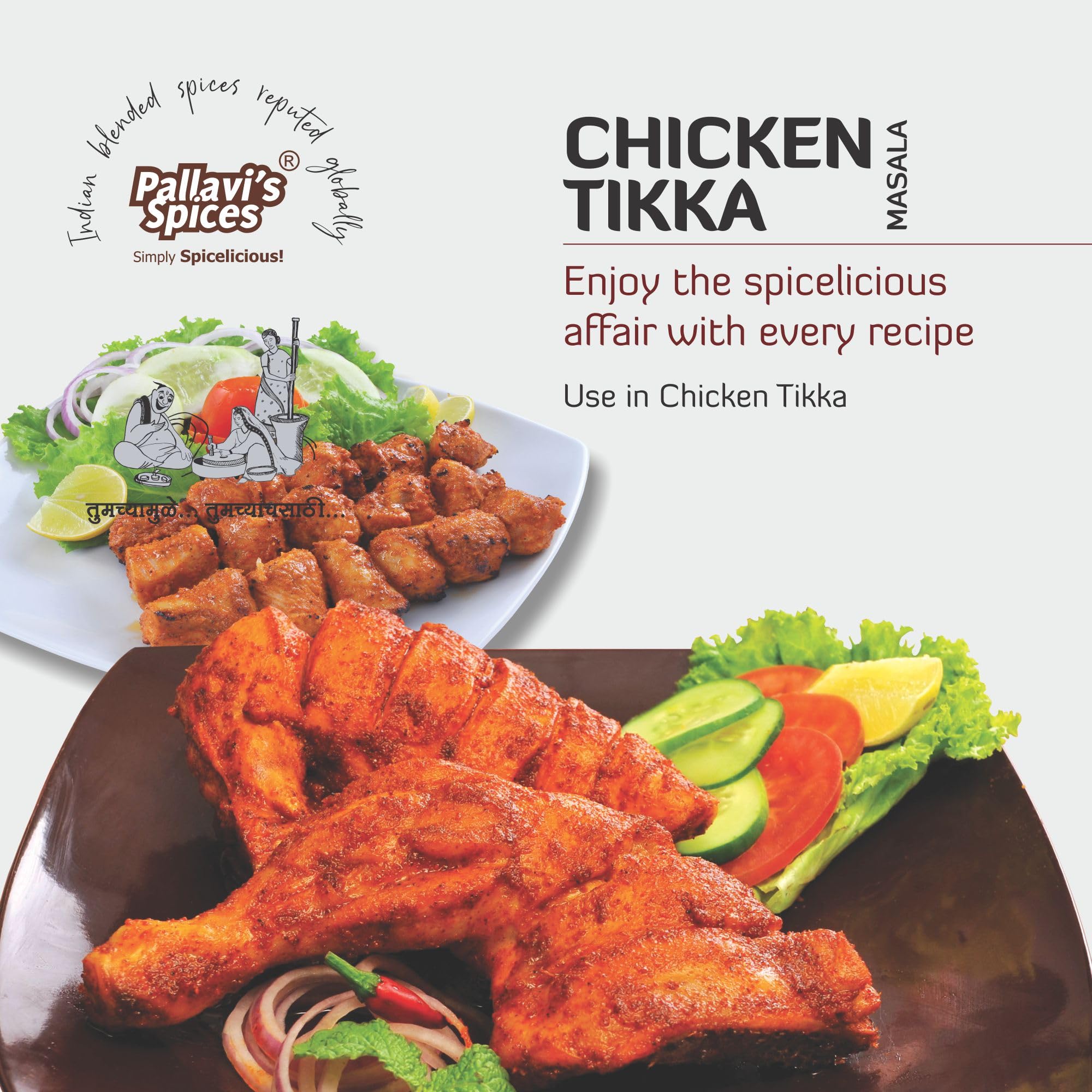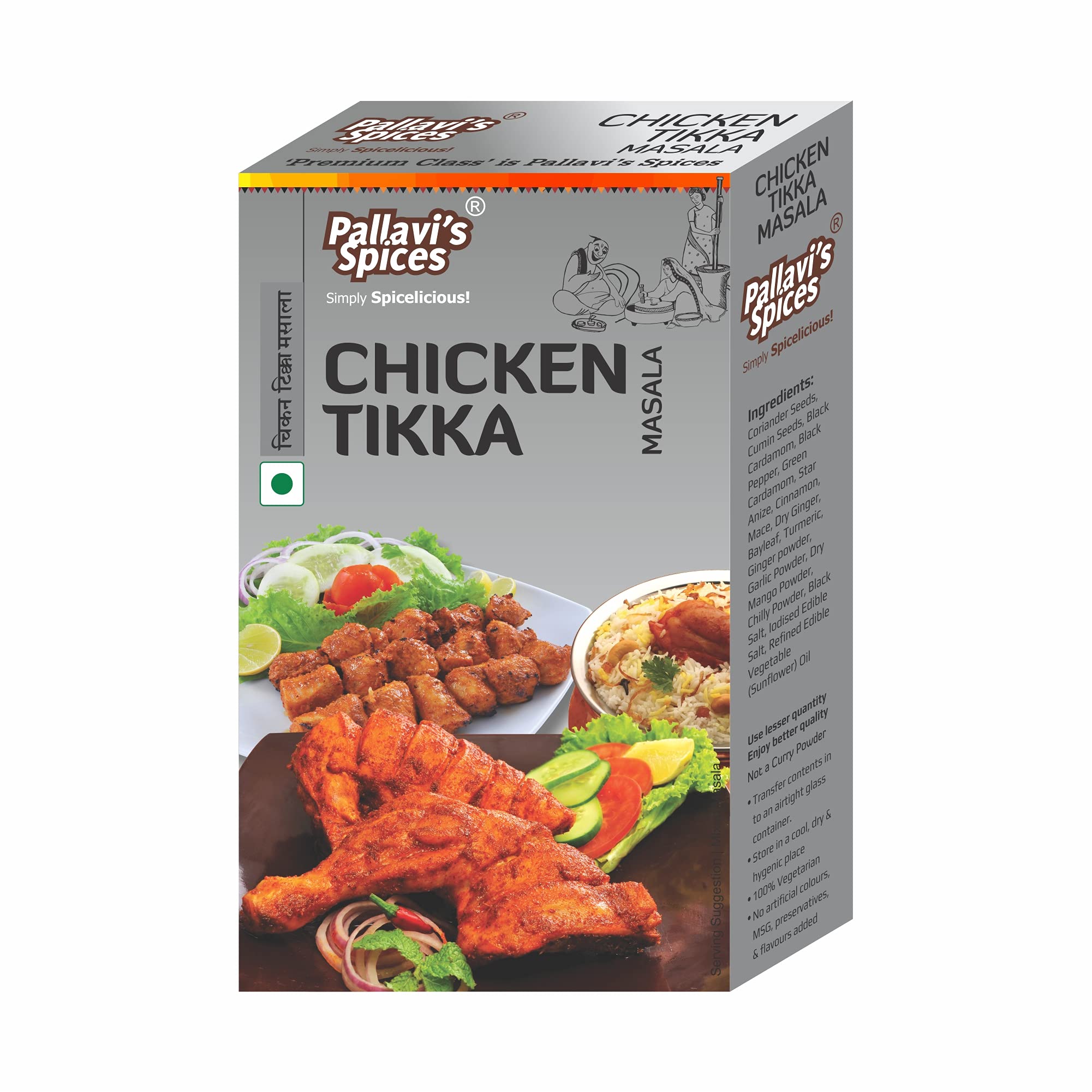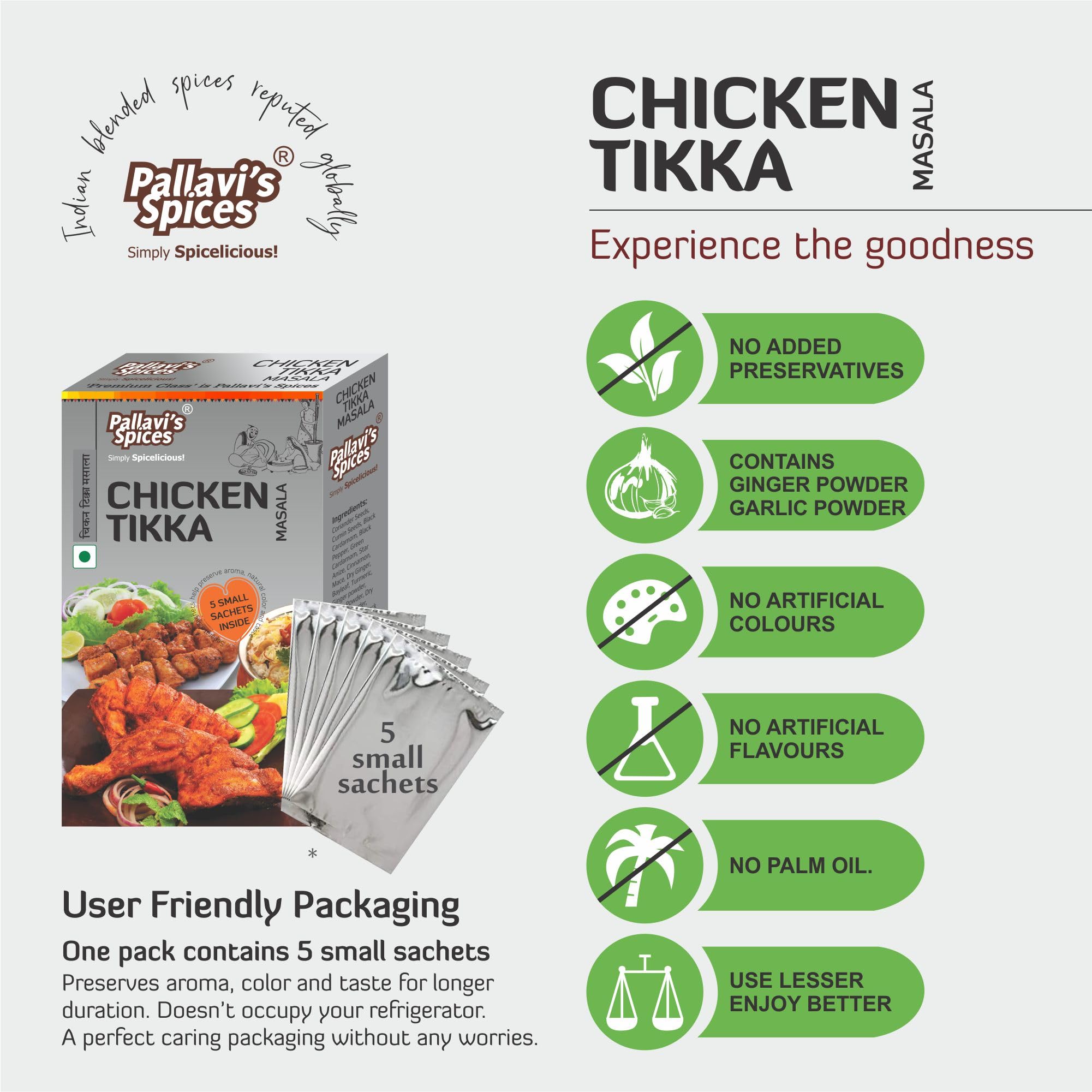 Pallavi's Spices Chicken Tikka Masala | Flavourful Aromatic BBQ Marination Masala/Spice Blend/Powder | 5 x 10g sachets per pack | 50g (Pack of 4)