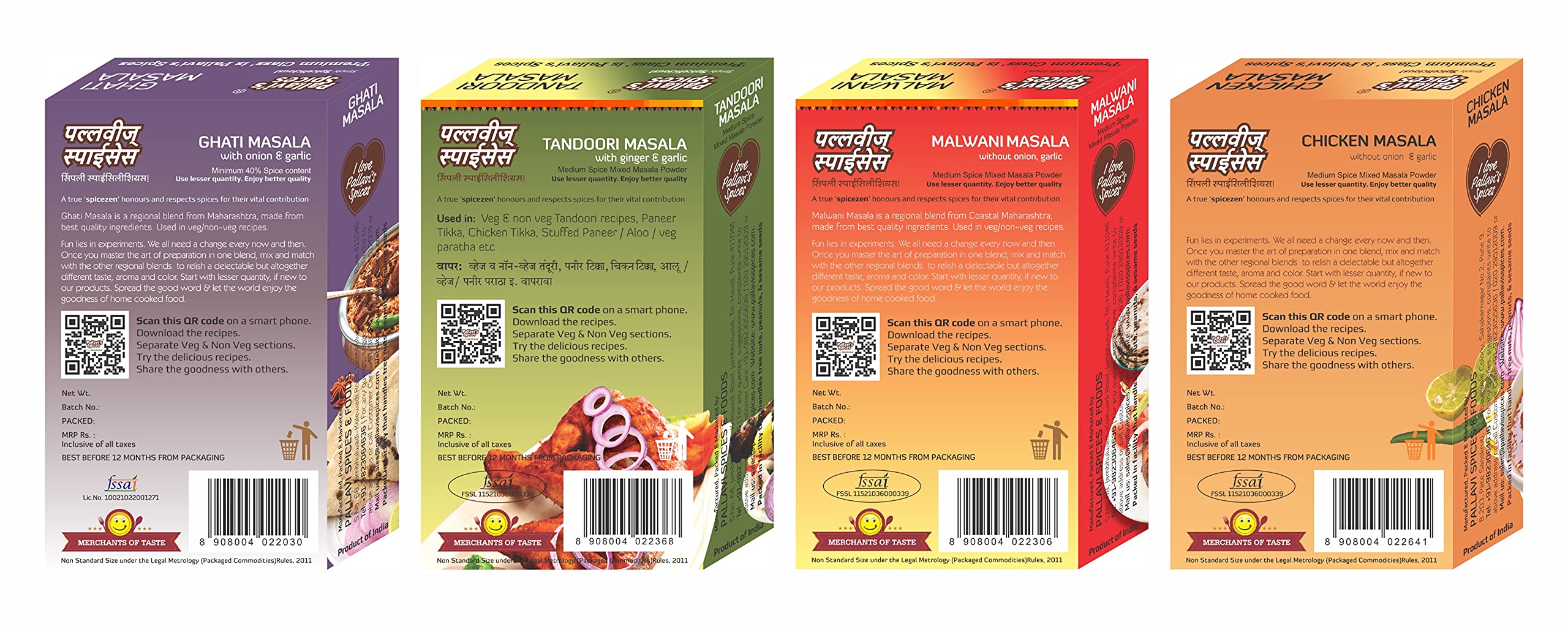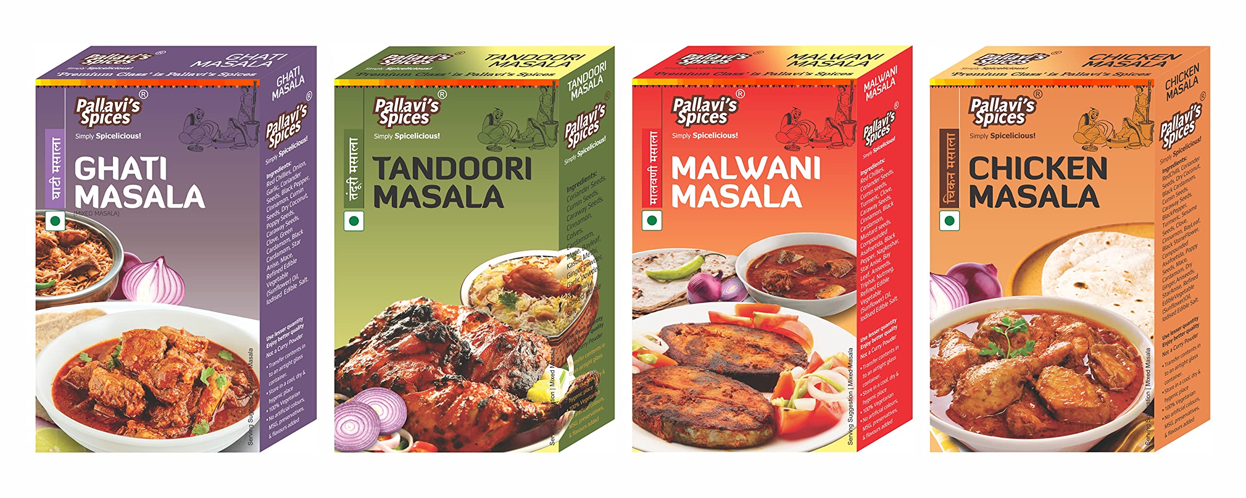 1 Malwani Masala 1 Ghati Masala 1 Chicken Masala and 1 Tandoori Masala of 50g each