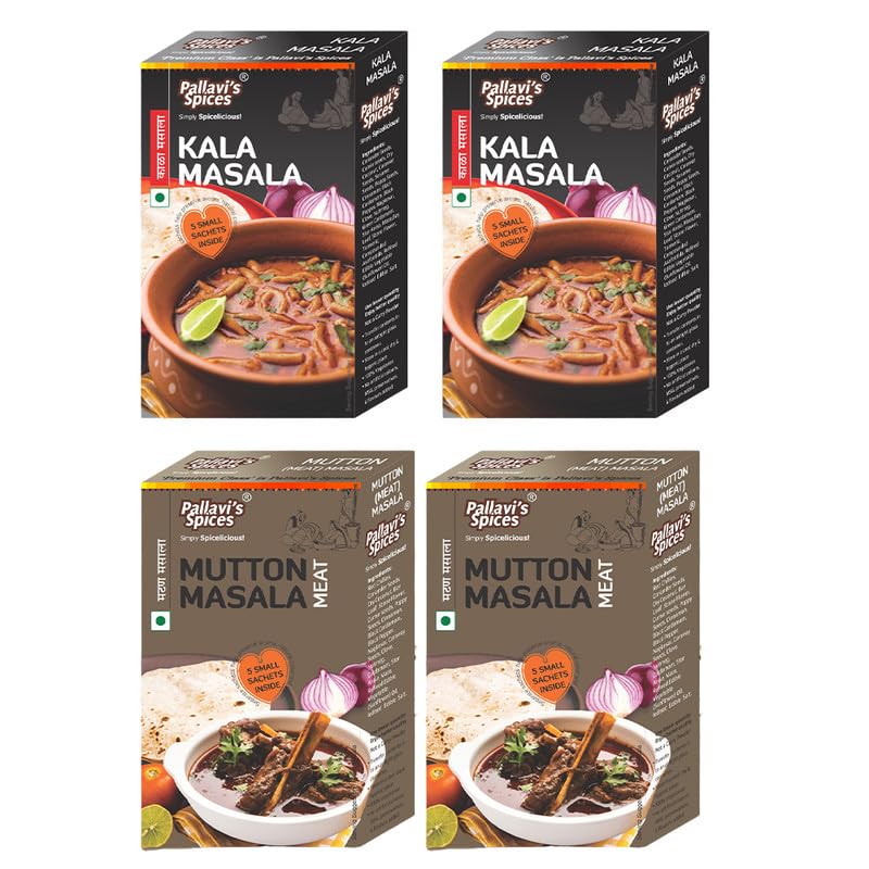 Pallavi's Spices Kala Masala (50gx2) Mutton Masala (50gx2) | No Artificial Color | No Preservatives | Indian Masala | Pack of 4