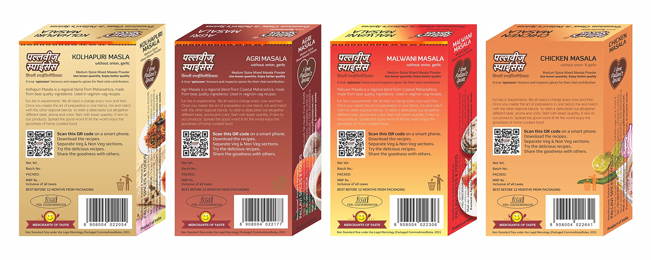 1 Kolhapuri Masala 1 Agri Masala 1 Chicken Masala and 1 Malwani Masala of 50g each