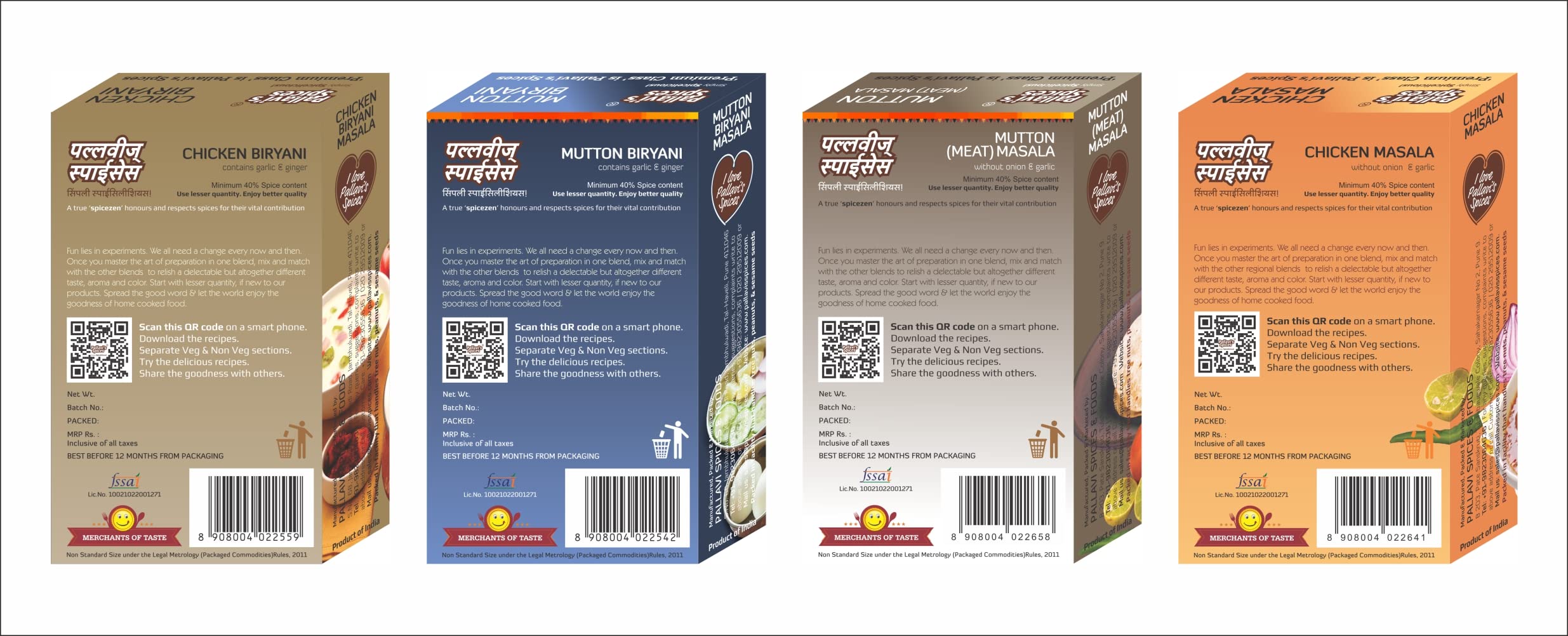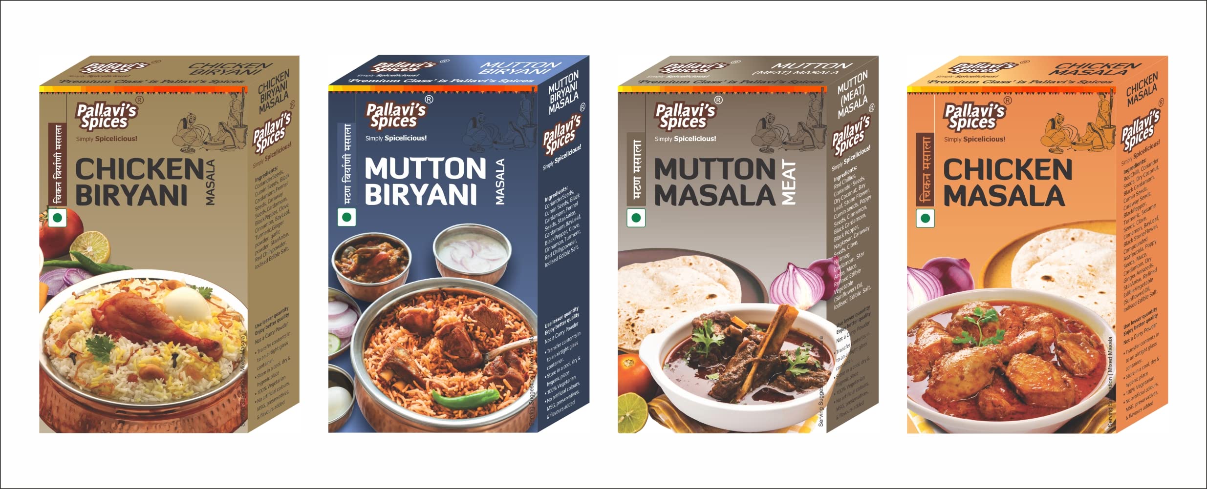 Pallavi's Spices Mutton Biryani masala Chicken Biryani Masala Chicken Masala and Mutton Masala 200g (50g Pack of 4)